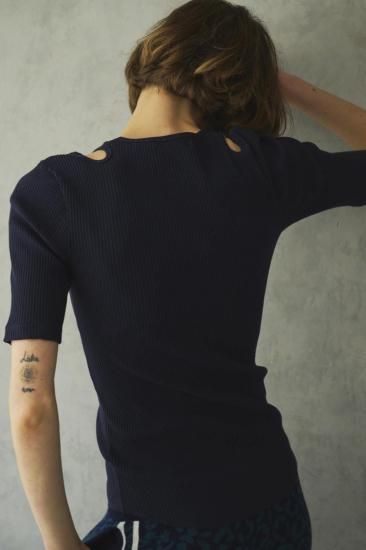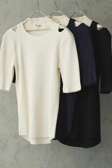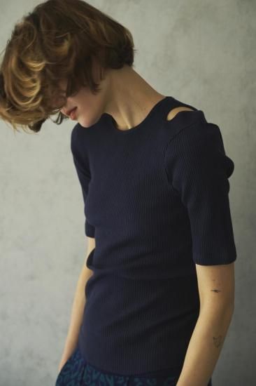 5分袖とネックサイドの肩のコンパクトな切り込みがアクセントになり、1枚で上品な大人のカットソーとして、少し暑さの残る秋や春など季節の変わり目にも活躍できそうなアイテムです。