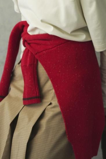 スウェットやニットなどにはもちろん、ジャケットやコートの上にも羽織ってみてください。タイトなニットやワンピース、デニムなどには腰巻きをしても素敵です。